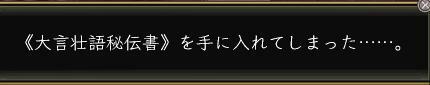 | | しかし、牙21本で本一冊もらうのに、何も160本も牙はいりませんよね。 実はこのクエストには、(多くのアイテム取得系クエストにも同じことが言えるのですが)ちょっとした小技がありまして、 もらったアイテムを破棄すると再挑戦可能 になるのです。 あの尊大なセリフをもう一度百曼陀羅聞かされるわけですが、聞かなきゃならないわけもあります。 その拾六で、「生産キャラクターは名声を上げにくい」という話をしましたが、この大言壮語クエストは、アイテム以外に名声がついてきます。 この名声が、以外においしいのですよ。